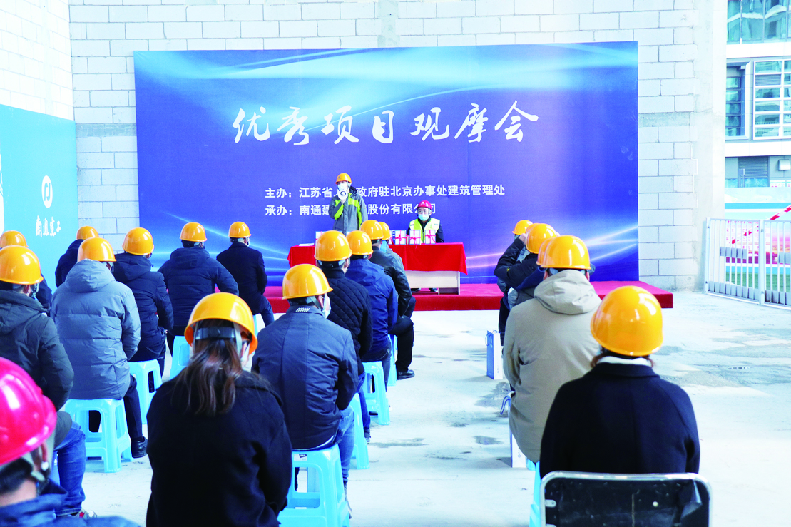 11月26日,江苏省人民政府驻北京办事处建筑管理处组织江苏省在京企业项目负责人、主管安全副总、项目经理到南通建工集团北京通州区运河核心区IX-05地块办公楼项目进行现场观摩学习,江苏省在京29家企业代表共计100余人参加了此次观摩。江苏省人民政府驻北京办事处建筑管理处钱明主任和南通建工集团北京公司葛毅忠副总经理参加观摩活动并进行现场指导。