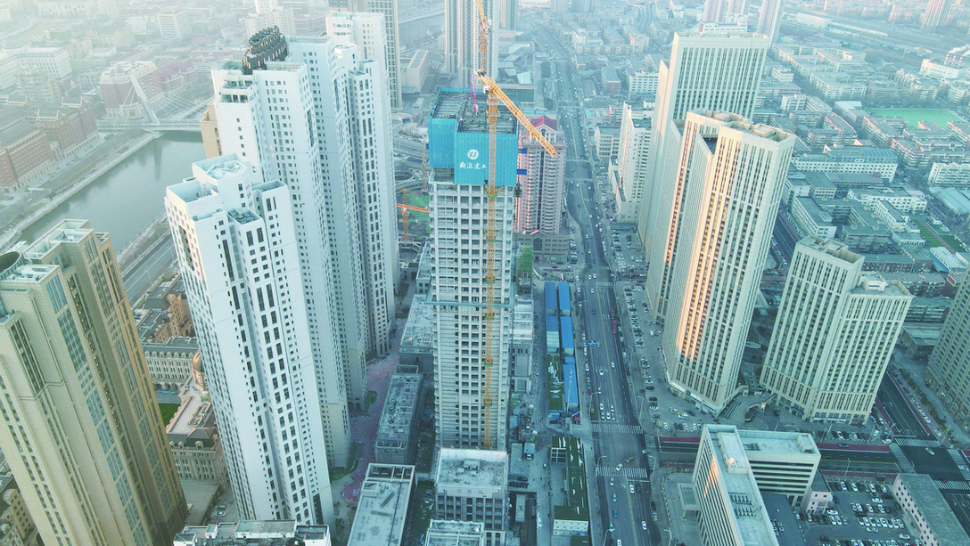 本项目总面积144004㎡,共包含9栋单体,其中商办1号楼总高度220m,地下2层,地上42层,为集团公司在建工程高度之最。项目涉及超厚筏板钢筋支撑体系、大体积混凝土浇筑、型钢混凝土结构型钢钢筋深化、超高变截面爬架提升施工、高支模、超高塔吊安拆等多项技术难题。本项目在场地形象布置、职工工作生活环境、现场标准化施工等方面均加强了投入,为南通建工在天津市场的品牌形象增添了价值和光彩。