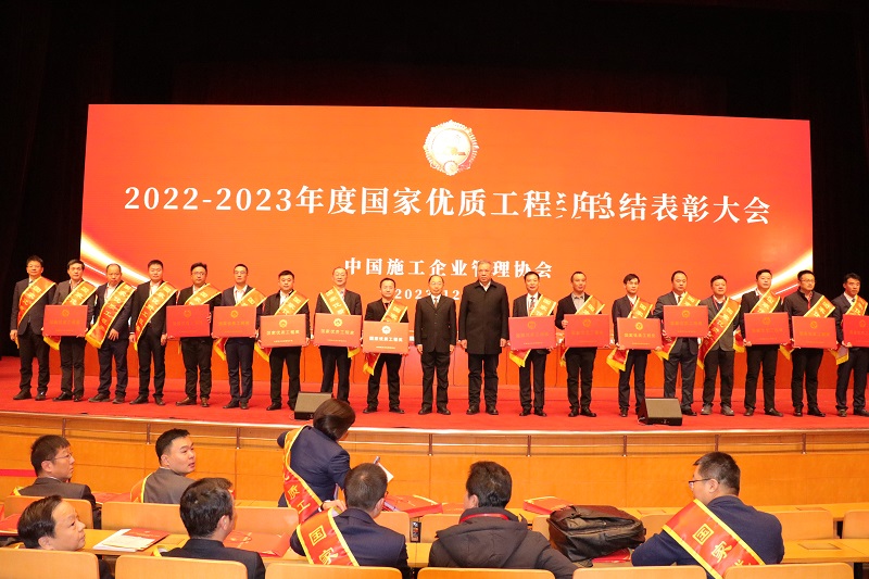 12月24日,2022-2023年度国家优质工程奖总结表彰大会在北京会议中心召开。中国施工企业管理协会会长王海怀、监事长张宁宁等领导出席会议。来自工程建设领域的各关联协会及建设、勘察、设计、施工、监理等700余家单位的1700余名代表参加了会议。会议对荣获2022-2023年度国家优质工程奖、2023年工程建设科学技术奖的获奖企业和先进个人进行了表彰。无锡分公司承建的新发汇融广场西区地块房地产开发项目施工总承包二标段(B地块)工程获评2022-2023年度国家优质工程奖,集团公司总经理张忠达出席会议并受领国家优质工程奖。