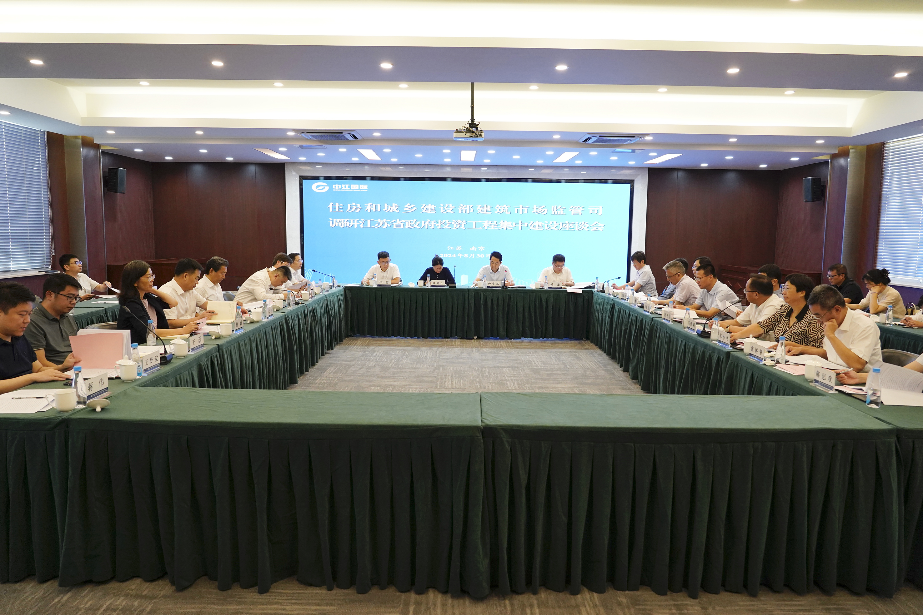 8月30日,住房和城乡建设部建筑市场监管司司长曾宪新在南京主持召开政府投资工程集中建设调研座谈会,听取江苏省及部分地方主管部门、施工企业、集中建设相关参与主体的工作汇报,详细了解江苏省开展政府投资工程集中建设情况。省住房和城乡建设厅党组书记费少云、副厅长李震、驻厅纪检监察组组长王福平出席会议,集团公司总经理张忠达作为民营施工企业代表应邀出席座谈会并作交流发言。