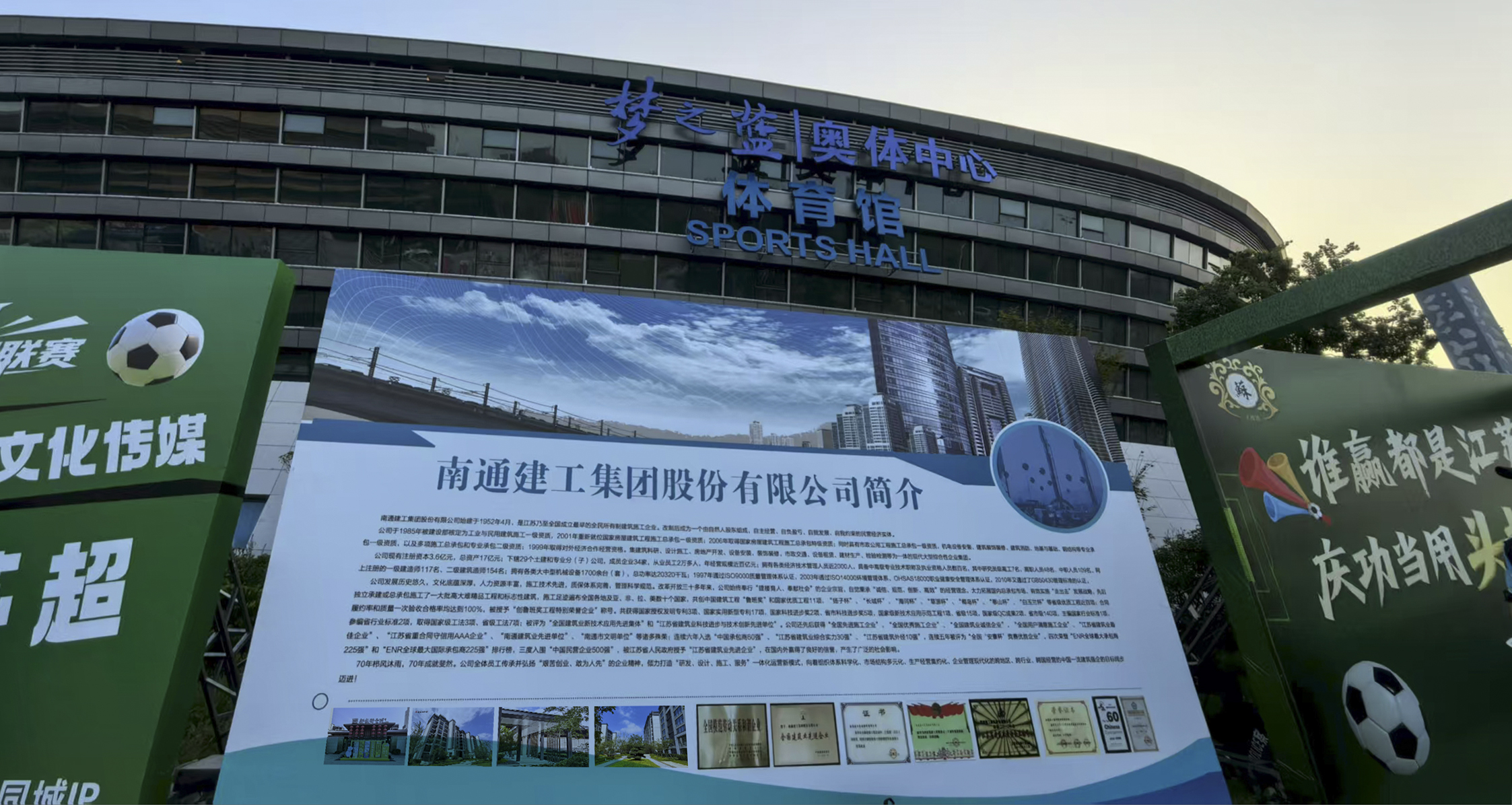 比赛当天,奥体中心入口处的南通建工展示牌已吸引不少球迷驻足。展示牌上,南通建工企业简介与宿迁新盛街壹号院项目效果图相得益彰,既展现了企业深耕城市建设的实力,也让市民直观了解到这一品质项目的风貌。