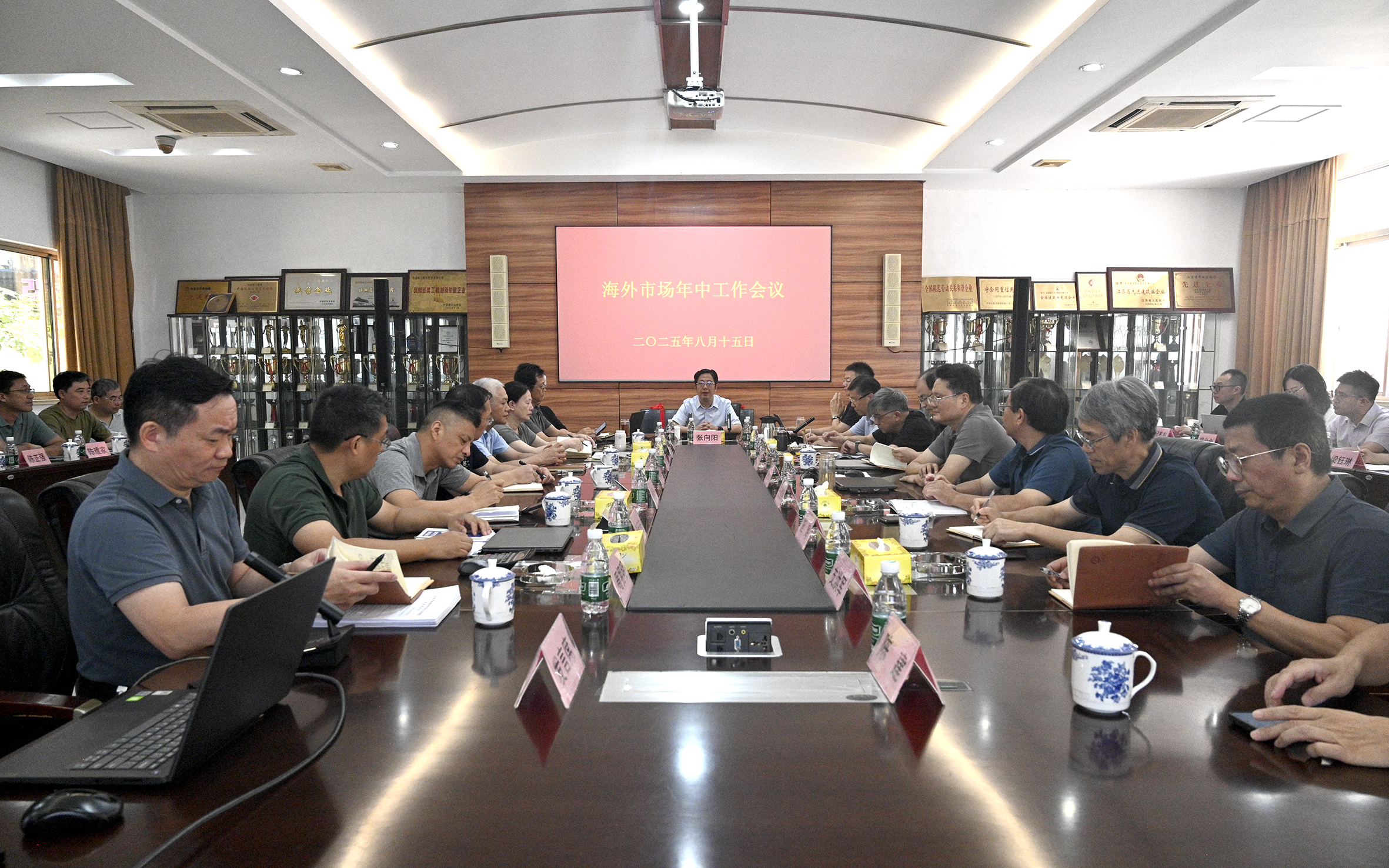 为总结海外市场上半年经营管理工作、部署下半年工作,不断加强海外市场经营管理、提高海外市场运营质量,8月15日集团公司召开了海外市场年中工作会议,全面总结上半年海外经营管理工作,研判公司“走出去”战略面临的新形势、新任务、新机遇、新挑战,研究部署下半年海外市场经营管理改进重点工作。集团公司在通领导、总部相关部门负责人及海外分公司本部全体管理人员30余人参加会议,集团公司总经理张忠达主持会议,张向阳董事长出席会议并作总结讲话。