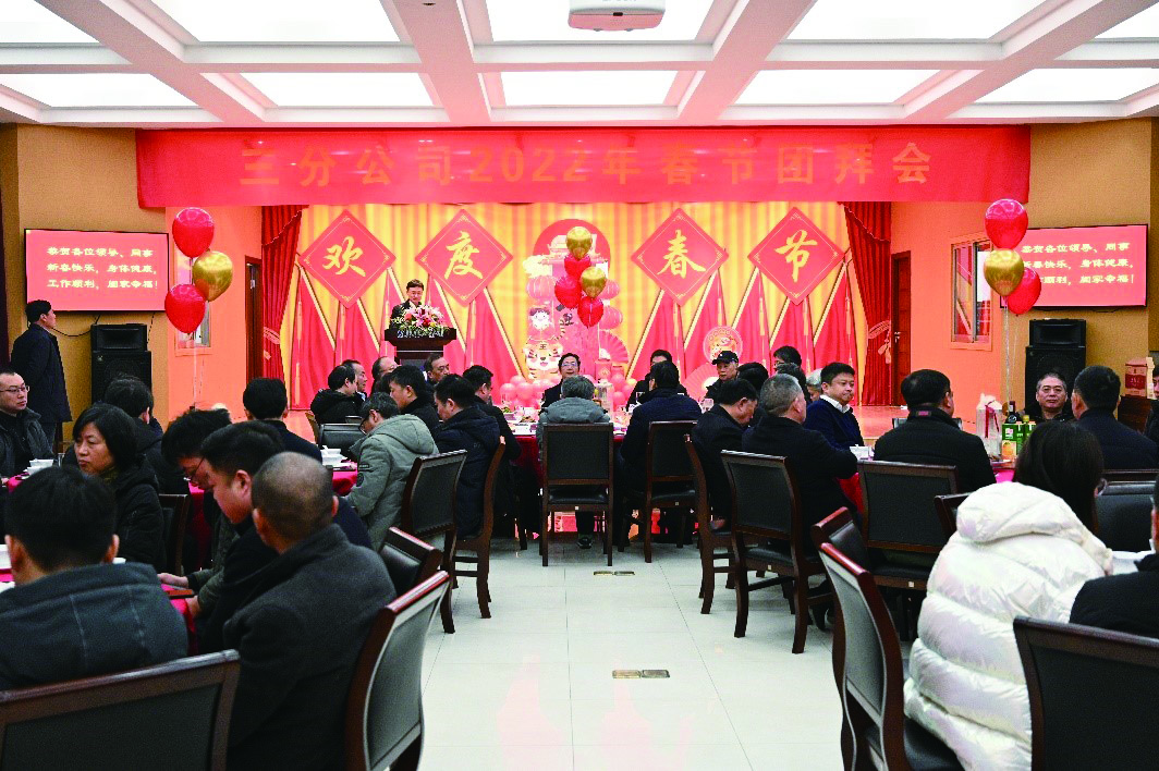 集团公司党委书记、董事长张向阳在团拜会上作了热情洋溢的讲话,他充分肯定了三分公司2021年取得的显著成绩,对三分公司全体干部职工的辛勤付出表示衷心感谢,并致以新春的祝福和问候。展望2022年,他对三分公司的工作提出了四点要求:一是要坚持稳字当头、稳中求进工作总基调;二是要加强经营开拓,加快结构调整;三是强化精细管理,努力降本增效;四是加强队伍建设,打造高素质团队。他坚信,新的一年,在全体干部职工的共同努力下,三分公司一定能开创高质量发展新局面!