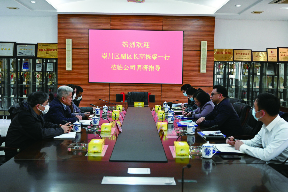 3月4日,崇川区副区长高栋梁、区商务局副局长朱凤春等一行,来我公司调研新冠疫情“外防输入”防控工作,集团公司副总经理陈国礼热情接待并作了详细汇报。