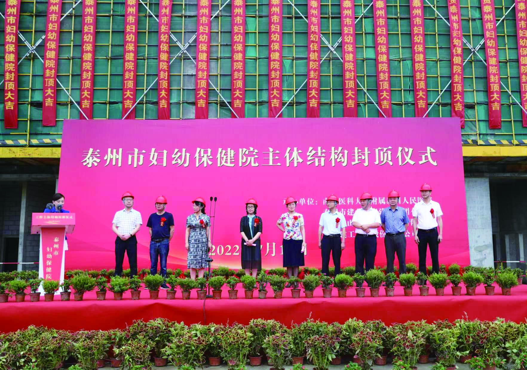7月18日,经过500多天紧张施工,泰州市妇幼保健院项目举行主体结构封顶仪式,泰州市人民政府、卫健委、住建局及建设单位领导,集团公司党委副书记、副总经理兼三分公司总经理钟一鸣出席封顶仪式。