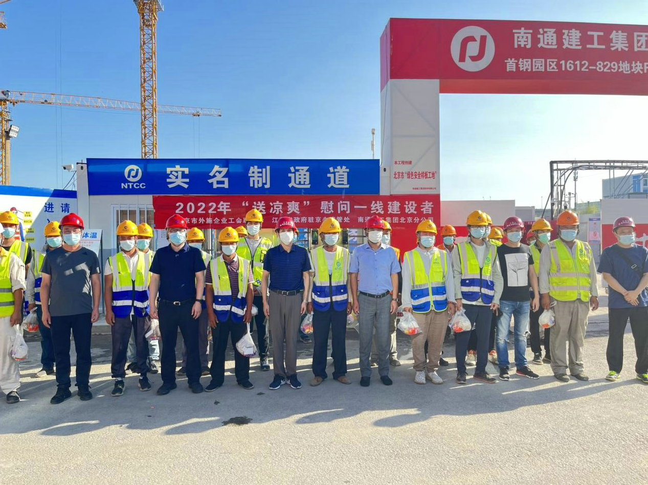 为切实保障施工现场一线建设者的身心健康和安全生产,9月7日,北京市外施企业工会联合会、江苏省政府驻京办建管处、北京分公司工会深入施工现场一线开展关爱一线建设者、送凉爽保安全慰问活动。