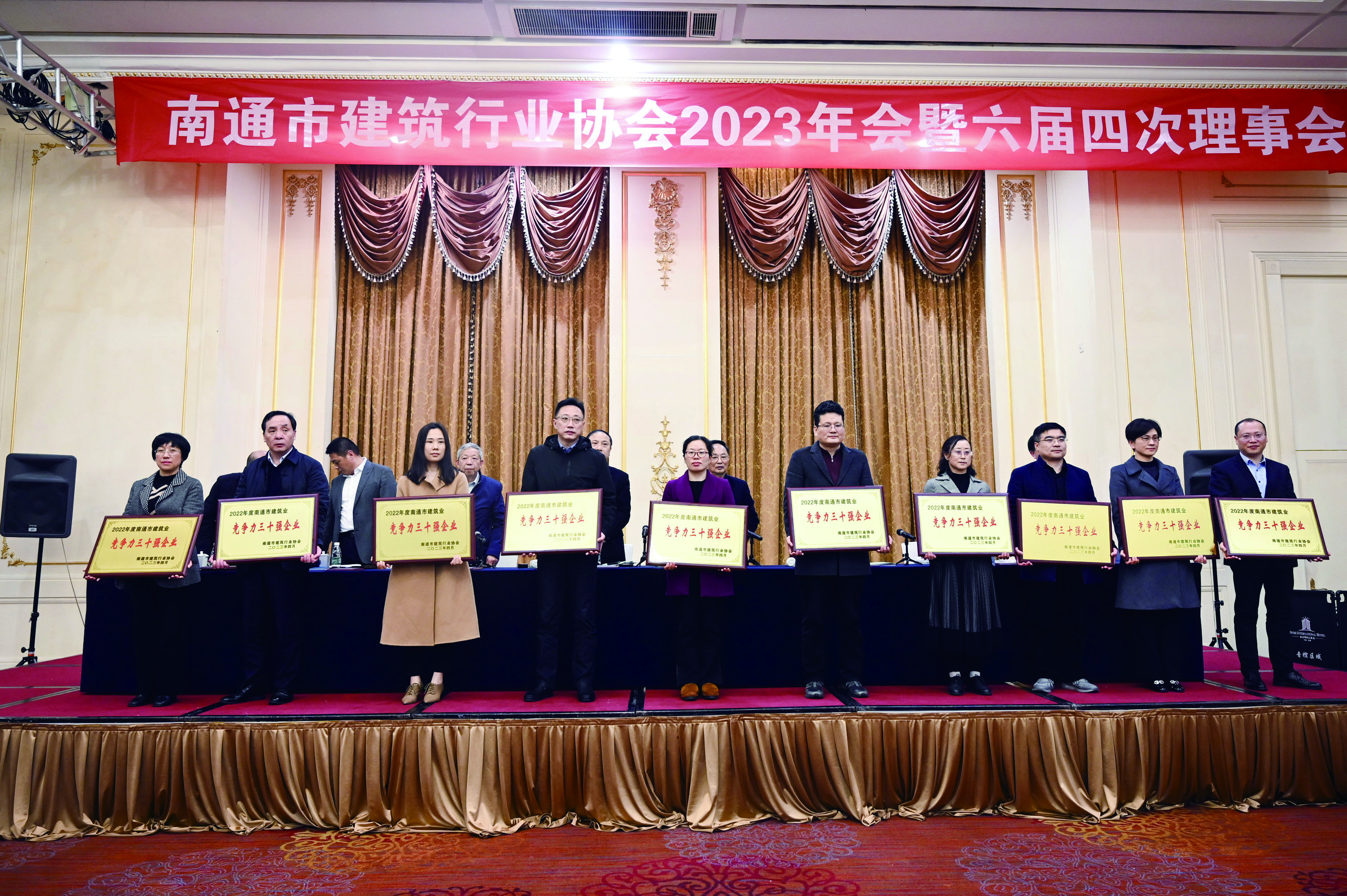 会上发布了2022年度南通市建筑业“双三十强”企业及“三优”的评价结果,并举行了授牌仪式。集团公司获评“2022年度南通市建筑业竞争力三十强企业”。张向阳董事长获评“2022年度南通市建筑业优秀企业家”,副总经理邱林获评“2022年度南通市建筑业优秀企业经理”。